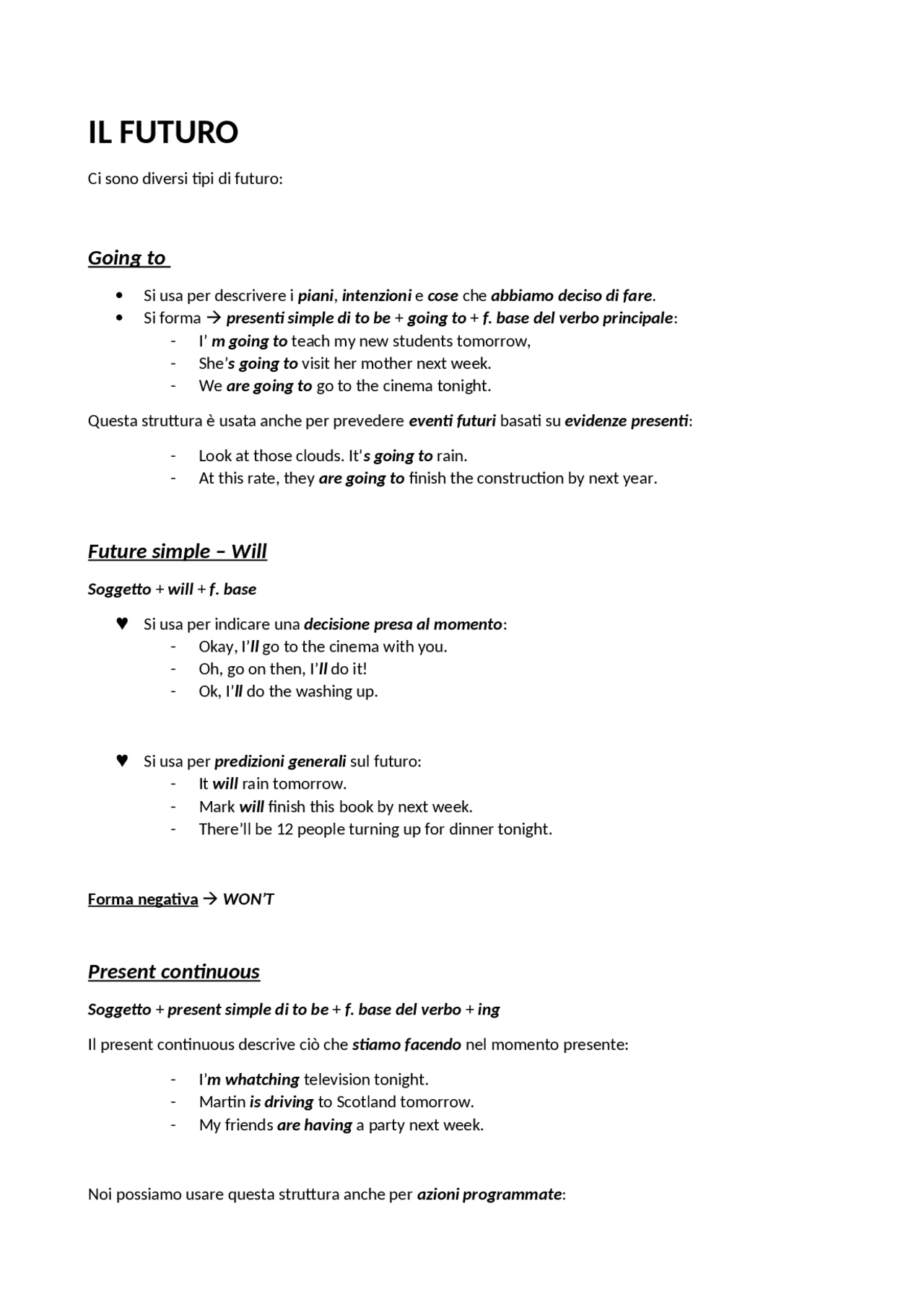 Esercizi grammatica inglese futuro Selda, Inglese Studocu