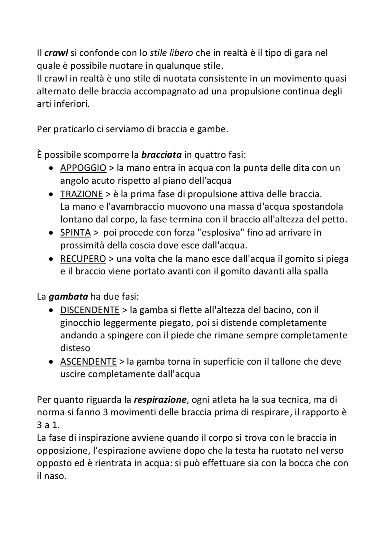 Stile libero introduzione, bracciate, gambata, respirazione Docsity