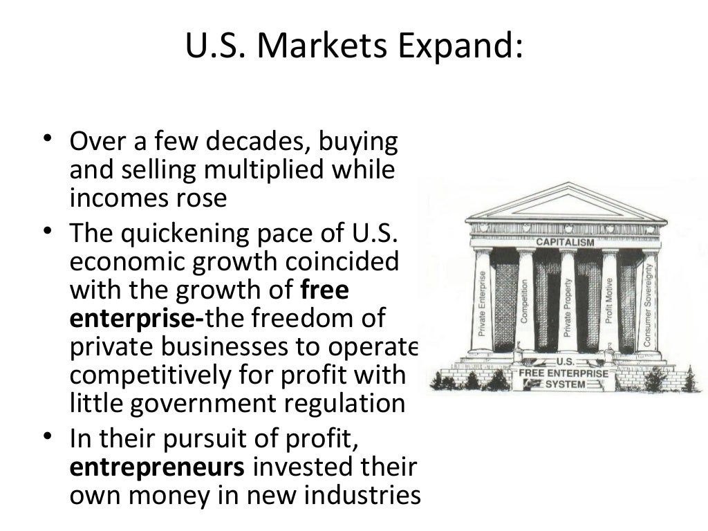 The Market Revolution. The antebellum era was a time not only of profound political change but also of great technological and economic innovation. The Industrial Revolution, which began in Europe in the 1700 s, had produced new inventions and methods of production. American inventors transformed the U.S. economy with new innovations of their own.