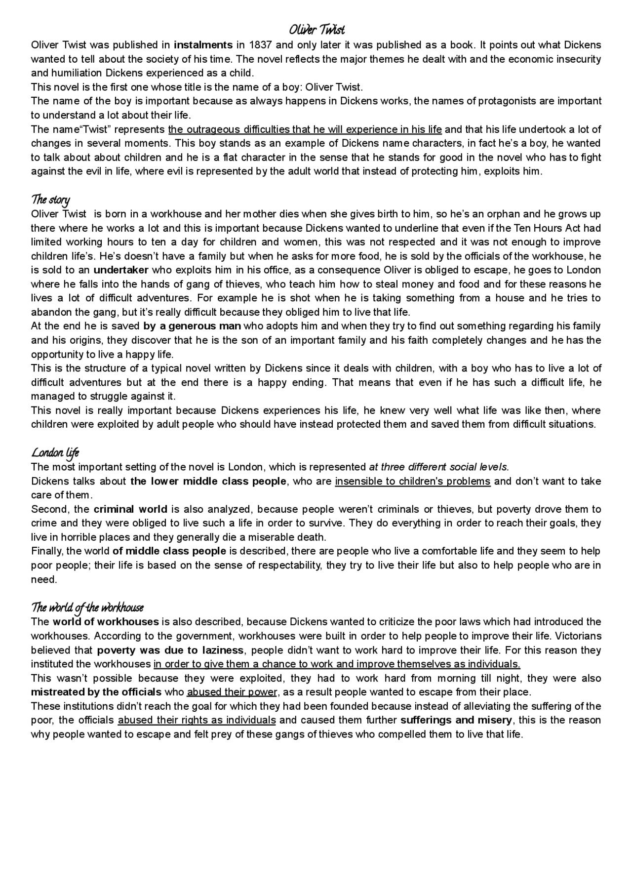 Oliver Twist di Charles Dickens riassunto in inglese Studenti.it