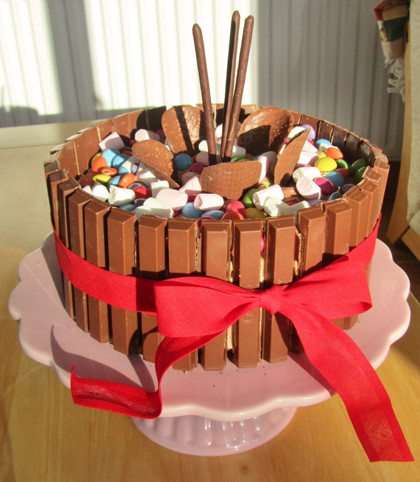Homemade KitKat Cake Recipe Instructions A homemade chocolate Kitkat birthday cake is simply a birthday cake with frosting that has about 40ish Kit Kats wrapped around the side and all held together by ribbon and can be made in a simple 60 minutes.